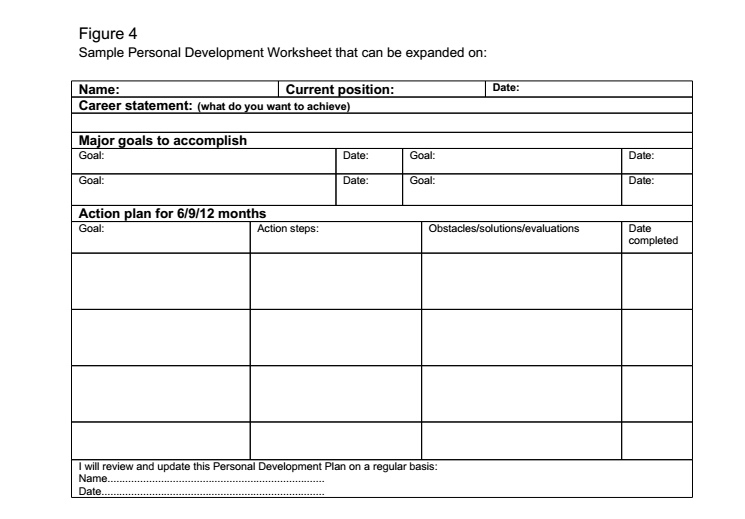 Sample Personal Development Plan Worksheet, which can be expanded on in future.